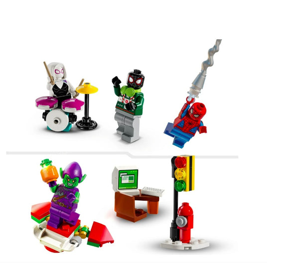 Im LEGO® Spider-Man Adventskalender 2024 findet dein Kind jeden Tag andere baubare Superhelden-Modelle und Minifiguren. - Adventskalender mit 24 täglichen Spider-Man Überraschungen für Kinder ab 7 Jahren - Zu den Mini-Modellen zählen ein Spider-Ham aus Schnee, ein Hotdogwagen und Electros Winterbaum - Enthält die Minifiguren Spider-Man, Green Goblin, Miles Morales, Ghost-Spider und Venom - Man kann die Geschenke kombinieren, um Filmszenen nachzuspielen oder eigene Abenteuer darzustellen - Vorweihnachtliche Geschenkidee, die auch noch lange nach Heiligabend großen Spielspaß bietet - Die Geschenke aus dem Kalender sind mit anderen separat erhältlichen LEGO® Marvel Sets kompatibel - LEGO® Marvel Sets bieten unzählige fantasievolle Bau- und Spielmöglichkeiten Der LEGO Marvel Spider-Man Adventskalender 2024 (76293) lässt junge Marvel Fans die Vorweihnachtszeit vom ersten Tag an genießen. Dieses Bauspielzeug und Abenteuer-Set bietet jede Menge Spaß mit baubaren Modellen und LEGO Marvel Spider-Man Minifiguren. Deshalb ist der Kalender das perfekte Vorweihnachtsgeschenk für Jungen und Mädchen ab 7 Jahren. Das Vergnügen beginnt bereits am 1. Dezember und findet noch lange kein Ende, nachdem das letzte Türchen geöffnet wurde. An jedem Tag im Advent kann dein Kind hinter jedem Türchen ein Geschenk entdecken. Dein Kind darf sich auf 5 Minifiguren – Spider-Man, Green Goblin, Miles Morales, Ghost-Spider und Venom – sowie auf kleine Bauspielzeuge und Zubehörelemente freuen, die ihm aus den Filmszenen mit Spider-Man in den Straßen von New York City vertraut sind. Hierzu zählen unter anderem ein Spider-Ham aus Schnee, Peter Parkers Schreibtisch und Electros Winterbaum. 2 kleine Autos können gegeneinander Rennen fahren, und das Katapult von Sandman schleudert Geschenke! Je näher die Bescherung rückt, desto mehr Modelle und Figuren kann dein Kind kombinieren, um unzählige fantasievolle Abenteuer darzustellen. Entält 246 Teile.